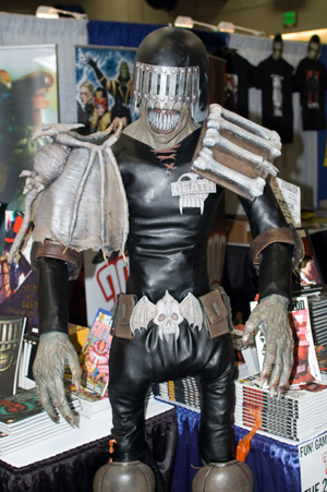 Sunday, the final day of the con, found the dealer’s room surprisingly crowded, considering how many people checked out of their hotels and were gone by noon. Signings and giveaways continued, and the great last minute deals of yore were few and far between. At a major t-shirt booth, a sleazy seller told me they were doing last-day deals, and proceeded to give me the same prices that had pertained throughout the con. Still, there was a feeling of letdown and even sadness on this last day, as if air had gone out of the balloon. My day began with a very good meeting with Nick Landau of Titan over breakfast, with plans for the futures of Quarry, Mike Hammer and others you would be familiar with. I spent most of the day buying books and looking at art, while Nate and Abby got away from the con for lunch with friends, and Barb took the trolley to Mission Valley for shopping, finding some great bargains. My signing at the Hermes booth allowed some hardcore fans to find me (since my usual signing in the autograph area did not happen) and I posed for quite a few pics, including some for an X-Files site where my having written X-FILES: I WANT TO BELIEVE makes me a minor celebrity…emphasis on minor. Hermes Books founder Dan Herman and I spoke about possible book projects.