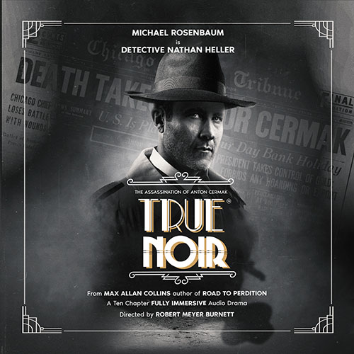 First – and more exciting news about this will follow in the next few Updates – True Noir: The Assassination of Anton Cermak, the 4 ½ full, full-cast adaptation written by me (from the first Nathan Heller novel, True Detective), will be officially released worldwide. You’ll find it downloadable at Audible and elsewhere, and will be able to order the Skyboat Media 4-CD set (yay physical media!).
