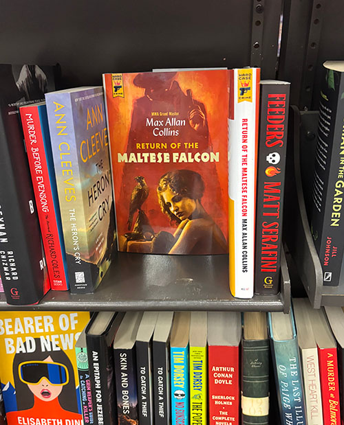 The response to Return of the Maltese Falcon continues to be overwhelmingly favorable and wide-spread. The only disappointment has been the lackluster “support” from Barnes & Noble’s brick-and-mortar chain. I get sporadic reports both that a copy or two are in stock or not at all – the latter includes the Cedar Rapids Barnes & Noble, where I have done business for decades and have done numerous book-signings.