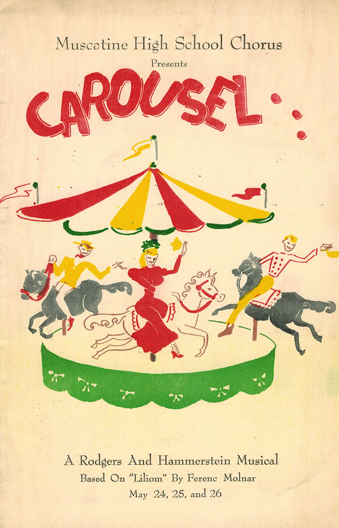 I was in most of Dad’s productions, of which Carousel is the one I remember most vividly, because he arranged to have a working carousel on stage. He was an amazing vocalist and vocal teacher who gave up teaching to become an executive in industry, a career shift he did not love but paid well; on the side, he directed a national championship Elks male chorus for fifty years to exercise his creativity and stay sane.
